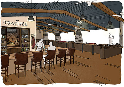 An Ironfires Golf Range & Grill will be developed on roughly 1/2 of the current driving range. It will feature 20 standard bays plus 1 VIP bay, a full service restaurant as well as a premium bar. Dine at the golf bay or enjoy seating in the main area or on the patio overlooking the putting green.